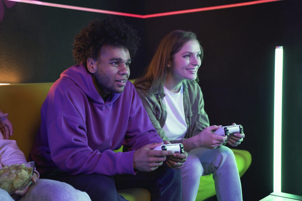 Descripción: Antes o después de tu experiencia VR, disfruta de nuestro lounge, un espacio cómodo con consolas de videojuegos y un ambiente agradable.